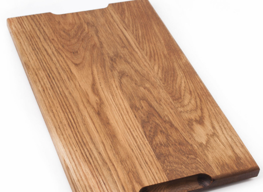 Лаконичный дизайн дубовой разделочной доски привлекает взгляд богатой текстурой и делает её удобной в применении на кухне.